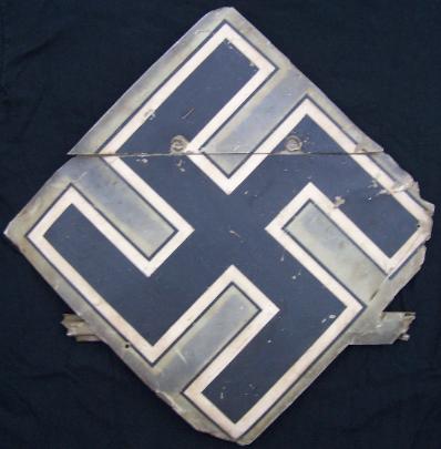 original, wartime era painted swastika that was cut from the tail section of a downed Messerschmitt