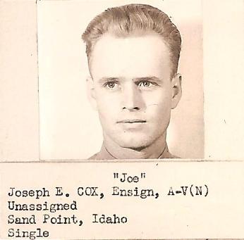 | The two pilots who were mentioned by Leiut-Comdr. Bakutis in his letter to the Spears family about the collision between Spears and Wilbur, Ensign Joseph Cox and Lt. Lillard. See below for additional information concerning Ensign Cox. All four of these brave men would lose their lives during WWII. |