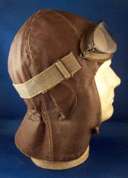 Above: An original, pre-1945, leather glider pilots flight helmet with 1943 dated goggles. This