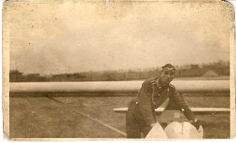 pilot preparing to enter his glider. On the reverse side of the photograph is a portion of the