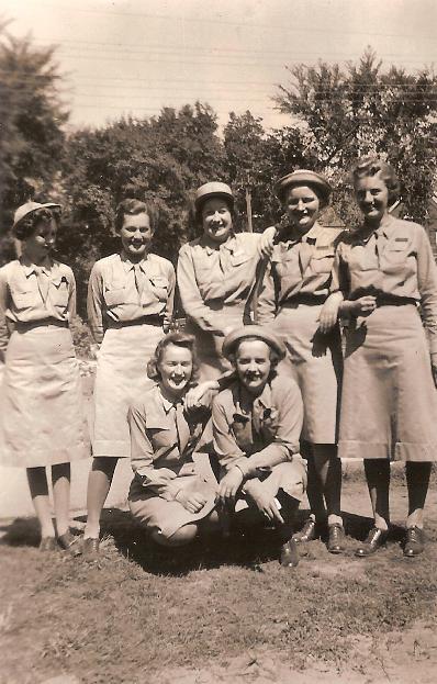 Right: Another "Summer Staff" photo from September 1942 identifying the follow as (L to R): Louisa Dungan, Chris Walsh, Eva Forrester (Sgt.), E. Zimmerman, Vera Wilson, E. Russell and Bernice Brust. |