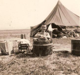 Above: A wartime snapshot of MacGregor and another pilot identified as "Bob Kelly of Kentucky" enjoying a "first beer in several months." |