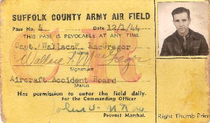 Lt. Col. Wallace Fletcher MacGregor, service #0-430828, was born on August 31, 1915 in Wyckoff, New Jersey. A graduate of Central High School in Patterson, New Jersey, MacGregor would continue his pre-war education at New York University. MacGregor would go on to work for the Mutual Life Insurance Company in New York City from 1932 to 1940, before entering into the United States Army Air Corps in April of 1941. MacGregor attended primary flight training in Camden, South Carolina, basic flight training in Augusta, Georgia, and r graduated from Advanced Flying School at Craig Field in Selma, Alabama, earning his wings and a commission in the USAAC as a 2nd Lieutenant. By 1942, MacGregor would find himself flying P-39's and stationed at Dow Army Air Field in Maine. MacGregor and his squadron were training for and preparing to fly their P-39's across the Atlantic to England. The group's calculations revealed that any route they attempted to take across the Atlantic Ocean would find all of them in the drink! MacGregor and the rest of his squadron left their P-39s behind and were sent on to Brooklyn, New York, to embark on convoy ships bound for England. The P-39s were scheduled to be crated and loaded aboard the convoy ships, but the Lend Lease Act intervened and the P-39's were never seen by the squadron again. After two weeks of zig-zagging across the Atlantic, MacGregor and his squadron arrived in England. To their surprise, the squadron was outfitted with Spitfire MK VB's. The squadron would spend several weeks in Londonderry, Ireland, getting check out in their new Spitfires. MacGregor would fly numerous missions with the Royal Air Force in the German controlled skies of western Europe over the next few weeks. |