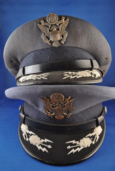 Left: Two post WWII, United States Air Force officers caps, which once belonged to Lt. Col. MacGregor. Both of the caps have Lt. Col. MacGregor's USAF business card inside the caps. Thankfully, a very nice couple recently contacted me and helped me to reunite these caps with the rest of Lt. Col. MacGregor's items. NOTE: If anyone has any items related to MacGregor's service, I would be interested in hearing from you. |